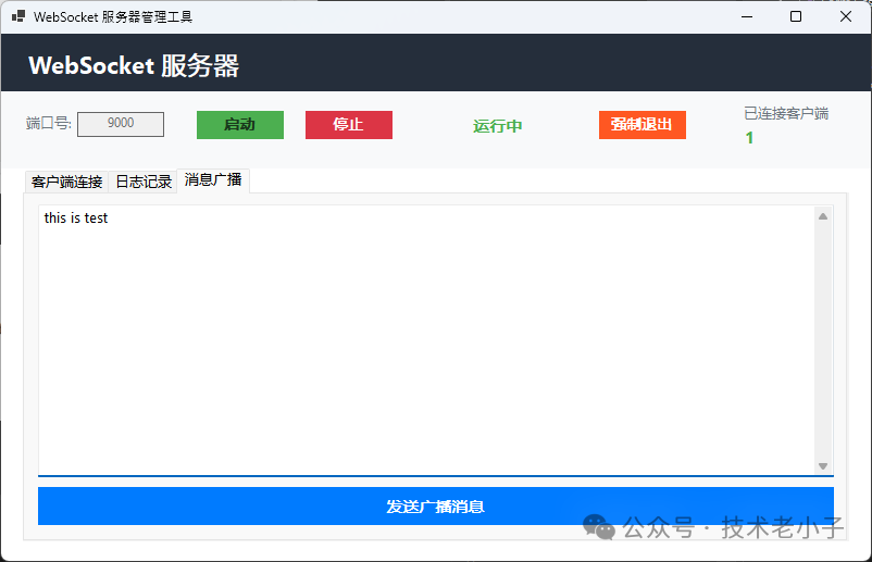 今天这篇文章,我将带你从零开始构建一个功能完整、界面精美、代码健壮的WebSocket服务器应用。不仅包含核心的WebSocket处理逻辑,还提供了WinForms可视化管理界面,让你能够实时监控连接状态、管理客户端、广播消息。