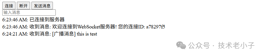 addMessage('已连接到服务器');
