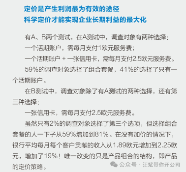 今天深度阅读《定价制胜:科学定价助力净利润倍增》这本由赫尔曼·西蒙和杨一安(均为德国籍专家),写的关于科学定价的名著。①战略定位:这是全书的“思想启蒙篇”。它不教具体怎么算账,而是要打破我们对“定价就是定个数字”的固有认知。②核心命题:定价是利润的第一杠杆。作者通过一个极端的实验告诉我们:哪怕不涨价,仅仅通过“操纵”产品的组合结构,就能瞬间提升19%的利润。①客户买的不是你的成本,而是他“觉得”这东西值多少钱。定价的本质,是衡量并引导客户的这种认知。我觉得这是首次阅读部分最干货的细节,让我整个人震撼了一下:③结果:59%的人选套餐,41%的人选单项。平均每人贡献1.89欧元。①在A的基础上,增加了一个“看似愚蠢”的选项3:单独一张信用卡=2.5欧元/月。②结果:几乎没人选选项3(仅2%),但它像一个“锚”,让选项2(同样的2.5欧能买两样)显得极其划算。选择套餐的人从59%飙升到81%。数据结论:在完全没有加价、没有增加成本的情况下,平均单客收入从1.89欧涨到2.25欧,利润整整提升了19%!①90%的企业:根本没有真正研究过定价,大多在拍脑袋或抄对手。②利润的意义:利润不是贪婪,而是企业生存和创新的唯一基石。定价就是通往利润的最短路径。①赫尔曼·西蒙:定价咨询鼻祖,Simon-Kucher公司创始人,50年实战经验,服务过全球顶级企业。