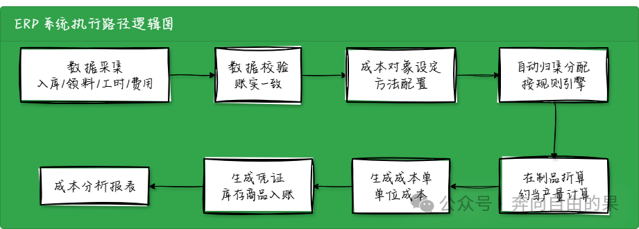 如果你觉得成本核算听起来好像特别头疼,一堆数据和各个步骤又绕来绕去。那也不要慌,咱们今天就手把手带你走一遍成本核算的一个完整的流程。 如果我们把成本核算想象成给厨房做算一笔总账。那就是今天我们做了多少菜,也就是产品。用了多少肉和菜,也就是这个材料。同时请了多少厨师和服务员,也就是人工。开了多少的灯,还用了多少的煤气,就是我们的制造费用等等。最后算出来每一道菜到底花了多少钱,算账的过程其实就是成本核算。 ![]() 第一步:月初准备——盘清家底,理清账单咱们接下来就可以按照时间顺序,我们一步一步的进行一个拆解。 第一步就是我们月初的一个准备,要盘清家底,数据一定要齐全。 这个就像大厨做饭一样,我们得提前要清点一下我们冰箱。成本会计在每个月初通常也在1号到4号左右,要做的第一件事情,是要确保所有的数据都到位了。 我们首先就是要盘清粮仓,也就是存货的一个核算,主要的任务就是要搞清这个月所有的材料进出存:我们原材料买了多少,我们领用了多少,车间有没有把用完的给退回来。 为什么要这么做? 首先是如果连仓库实际用了这些材料都算不清楚,后面的成本分配全都是空中楼阁。这就好比你连用了多少斤肉你都不知道,你怎么去算出每盘红烧肉的成本呢? 这里的一个关键动作就是要确保所有的材料的入库单、领料单,还有退料单都要处理完毕,系统里的存货数量是准确的, 其次我们就要理清账单了,也就是费用的处理。 我们除了材料,厨房运营还有一堆杂费,像水电的燃气费,也就是制造费用,还有厨师的工资,也就是直接人工,还有厨房的一些设备折旧,也就是我们设备折旧摊销等等。 我们要怎么做,要把这些当月的实际发生或者应该承担的一个费用,该付款的记账,该计提的要计提,该分摊的全部都要分摊,只有财务账做的全这个数据,这部分数据其实就是现成的。 简单的来说,我们第一步就是把本月所有花出去的钱和用掉的东西要按类别整理好,等着往产品身上贴标签。 第二步:明确对象——确定成本核算目标接下来我们进入第二步,要确定我们算谁的成本,要找到成本的对象,像这种数据已经准备好了,接下来就是要明确我们这个是要给谁算的,也就是成本的对象,我们可以根据企业生产特点的一些不同,算账的目标其实也是不同的。 如果你的公司像包子铺一样,那就要用品种法,产品的种类少,大批量的生产这些成本的对象就是产品的品种,比如说猪肉、大葱包、三鲜包等等,这个月总共做了多少个包子,就算这批包子的总成本和单个的成本 如果你的公司就像一个造船厂,那就要用分批法了,接下来都是大项目,那一艘船肯定都是一个订单,成本对象就是产品的批,比如说订单号,A001-远洋号货轮等等,这艘船的所有的花费就要单独的去核算。 如果你的公司像一个纺织厂,这个就要分步法生产经过多少个车间,比如先纺纱再织布,最后染色,成本对象就是每个生产的步骤,要先算纱的成本,其次再算布的成本,最后要算成品的成本,一步一步的结转下来。 所以在开始分配之前,必须要明确我这个月要核算的到底是哪些产品,哪些批次或者哪些生产步骤的成本。 ![]() 第三步:归集分配——将开销贴到产品上接下来我们进入了核心的一个算账,要把开销贴到对应的产品上面,这个其实就是最核心的一步了,是把第一步准备好的料工费,按照一定的规则分配到第二步我们确定的成本对象上面了,这个过程就是归集和分配。 首先我们要直接材料要对号入座,能明确哪种产品直接用的材料,比如说我们蛋糕用的鸡蛋和面粉就直接记到蛋糕的成本里面,这个就是比较简单,领料单上面通常都会有对应的信息 其次有间接费用,我们找个法子去分摊,比较麻烦的是那些没有直接对号入座的公共开销,比如说车间的照明电费,还有管理人员的工资以及设备的折旧,这些就需要找一个非常合理的尺子来分摊。 常规的尺子有哪些呢? 可以按照各个产品消耗的机械工时,还有人工工时,或者按照直接材料的金额比例来分。 比如说我a产品本月用了100个机器小时,b产品用了50个小时,那么这个电费就可以按照2:1的一个比例分摊给a和b了 最后我们处理半成品,也就是完工产品和在产品成本的一个分配。 我们月底了肯定有些产品已经做完了,还有一些就躺在生产线上了,在产品归集来的总成本就得在它俩之间再分一次。 这种常用的方法就是约当产量法,评估一下产品的完工程度,比如说完成了50%,把它折算成相当于多少件完成的产品,然后再一起参与分配,这样才算公平。 上面这些过程在ERP的系统里面,通常体现为一系列的确认和核算的步骤,像确认成本项目,核对数据,确认核算层级等等。 比如说我们先算一车间的,再算二车间的,然后在系统会自动的或辅助完成对应的核算。 ![]() 第四步:结果产出——计算、入账与报告那么接下来进入第四步,也就是出结果和入账了,这个就可以算出单价变成一个完整的闭环。 像我们上面经过一番分配,我们终于得到结果了,首先我们要计算单位成本,用某个成本对象的一个总成本去除,以它的一个完工数量,就可以得到我们非常宝贵的单位成本了,后续的定价分析利润的一个基础了。 这个公式其实很简单,单位成本=总成本/完工产量 其次就是产成品入库,根据算出来的成本,要做一笔非常重要的会计分录的入账 借:库存
