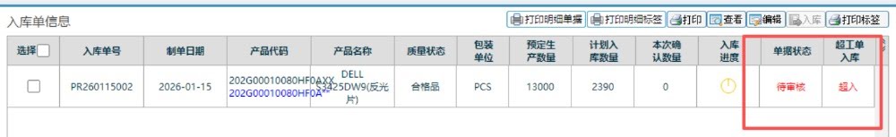 点晴模切ERP-生产入库单超订单入库流程操作