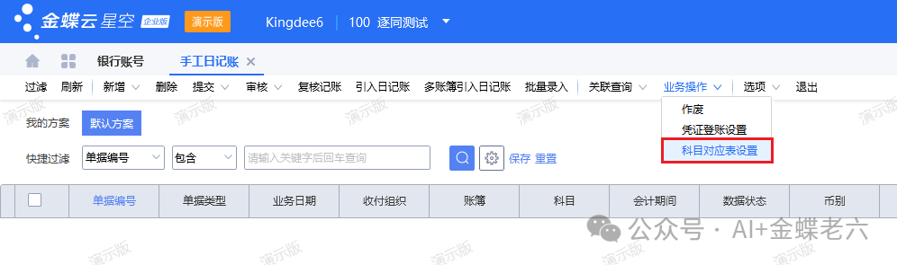 2.科目对应表设置:如果银行账号不挂在科目维度上,一个银行账号设置一个科目,则需要进行以下设置