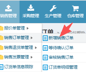 2、新增销售单选择自定义数据源 操作步骤:销售管理-销售订单管理-新增销售订单