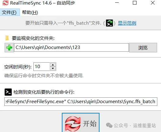 步骤2:设置触发命令在"检测到更改时"框中输入以下命令: