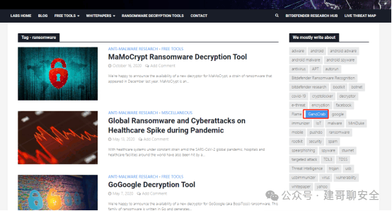 在avast页面找到gandcrab的标签。