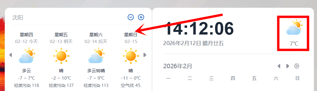 3、鼠标放在天气上,会自动弹出近期的天气。