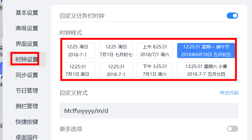 5、还可以根据喜好设置时钟样式、是否开始桌面日历、时钟等插件。