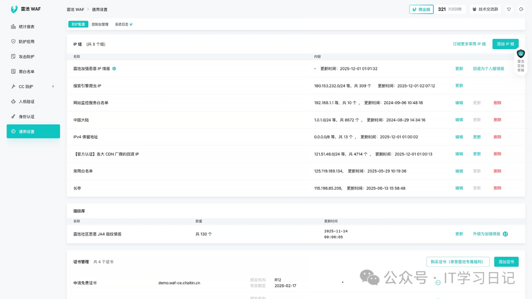 简介SafeL是一款开源免费的自托管Web应用防火墙(WAF),旨在为Web应用服务提供一层安全防护屏障,可有效防御各类非法恶意攻击。它提供了访问频率限制、人机验证、动态防护等核心功能,通过过滤和监控Web应用与互联网之间的HTTP流量来保护Web服务,可有效抵御各类SQL注入、XSS、代码注入、命令注入、CRLF注入、ldap注入、xpath注入、RCE、XXE、SSRF、路径遍历、后门、暴力破解、CC、爬虫等攻击,保护用户资产不受侵害。 SafeL的防护效果不仅仅只是纸上谈兵,截止目前为止,在全球装机量已经超过30万台,日均处理300亿次请求,检出率76.17%,误报率仅0.22%。 它支持容器化部署(Docker 、Docker-compose)和自有服务器部署2种方式,用户可基于需求灵活选择,作为自托管WAF,用户可对流量、日志、配置完全掌控,不依赖任何第三方SaaS,适合对数据隐私、安全性有较高要求的个人和团队,可应用于个人网站、企业网站、企业各类服务,大型Web应用等多种场景。