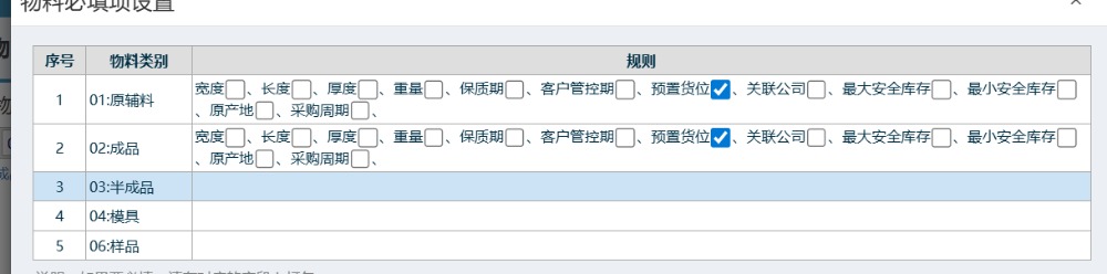 点晴模切ERP新增物料必填项设置