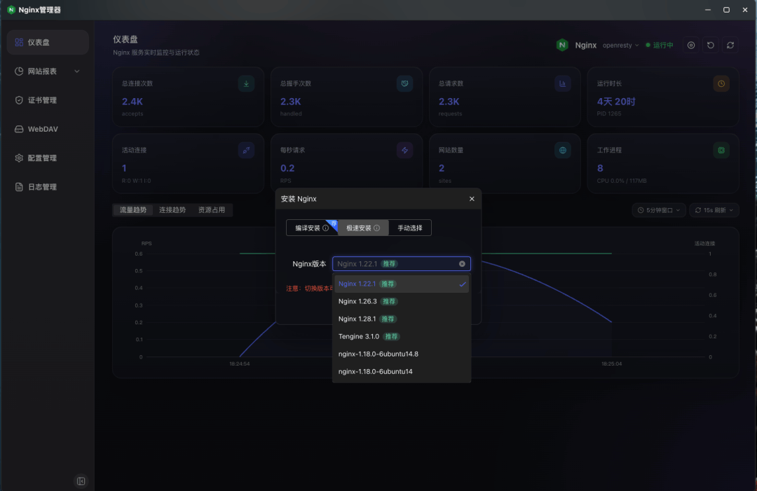 它适合用于企业文件共享、团队协作空间、测试环境文件分发、个人云盘场景,以及需要为不同客户或业务快速分配独立文件访问入口的平台型服务。1.打开GMSSH应用中心安装nginx管理下载安装3.新增一个webdav模块,输入表单完成创建,设置要共享的目录4.到另外一台服务器测试挂载(linux机器为例)sudo apt install davfs2sudo yum install davfs2sudo dnf install davfs2