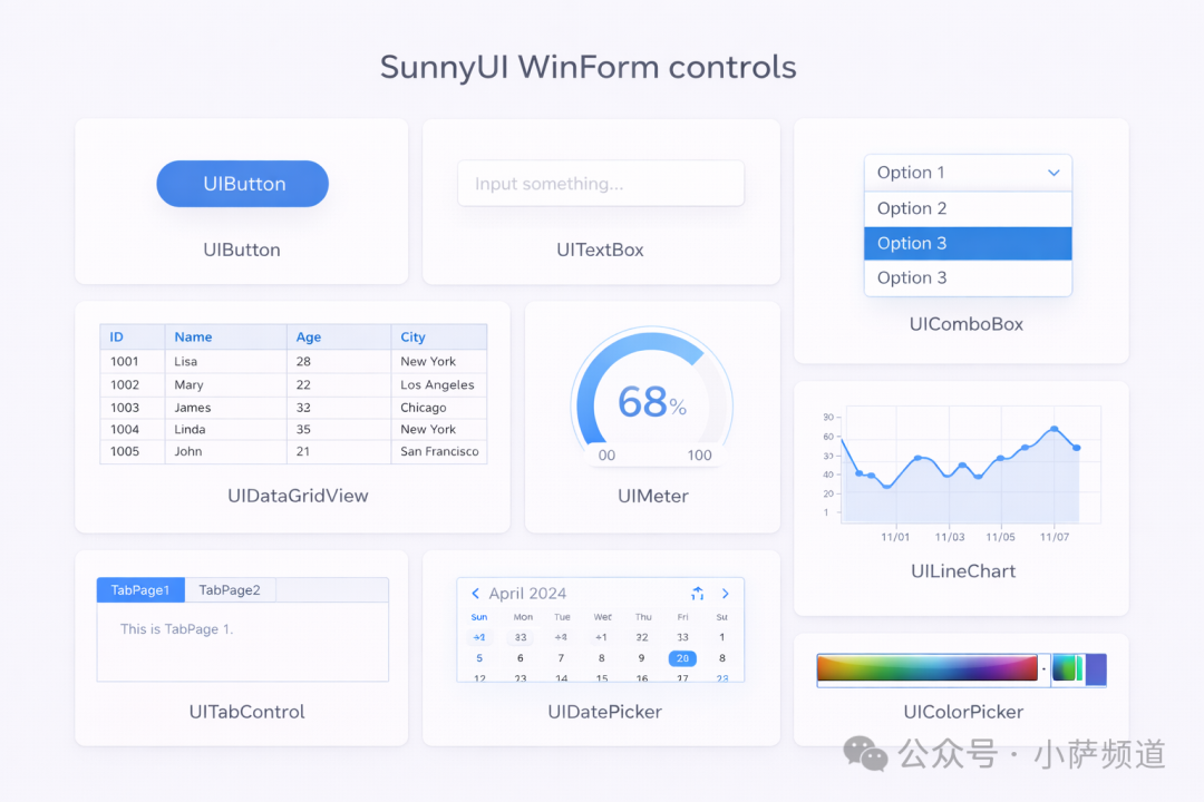 SunnyUI 把这些做成了原生控件:拿过来配参数就能用,不需要自己画图,不需要调 Win32 API。
