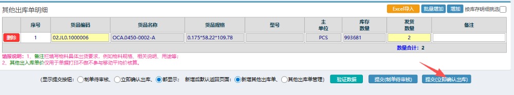 点晴模切ERP仓库管理—仓库出库管理之新增其他出库单