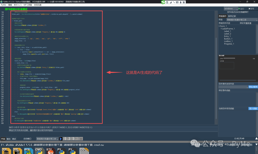 3.等待PyMe的AI助手生成代码。