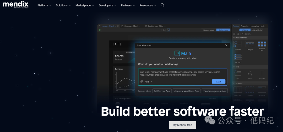 某制造企业用 Mendix 搭了个 “生产执行系统”,业务人员(生产经理)负责设计生产流程,IT 人员负责对接 ERP 系统,2 周就上线了,生产效率提升了 25%。 除了这两个 “双巨头”,国外的传统软件巨头也在发力低代码: