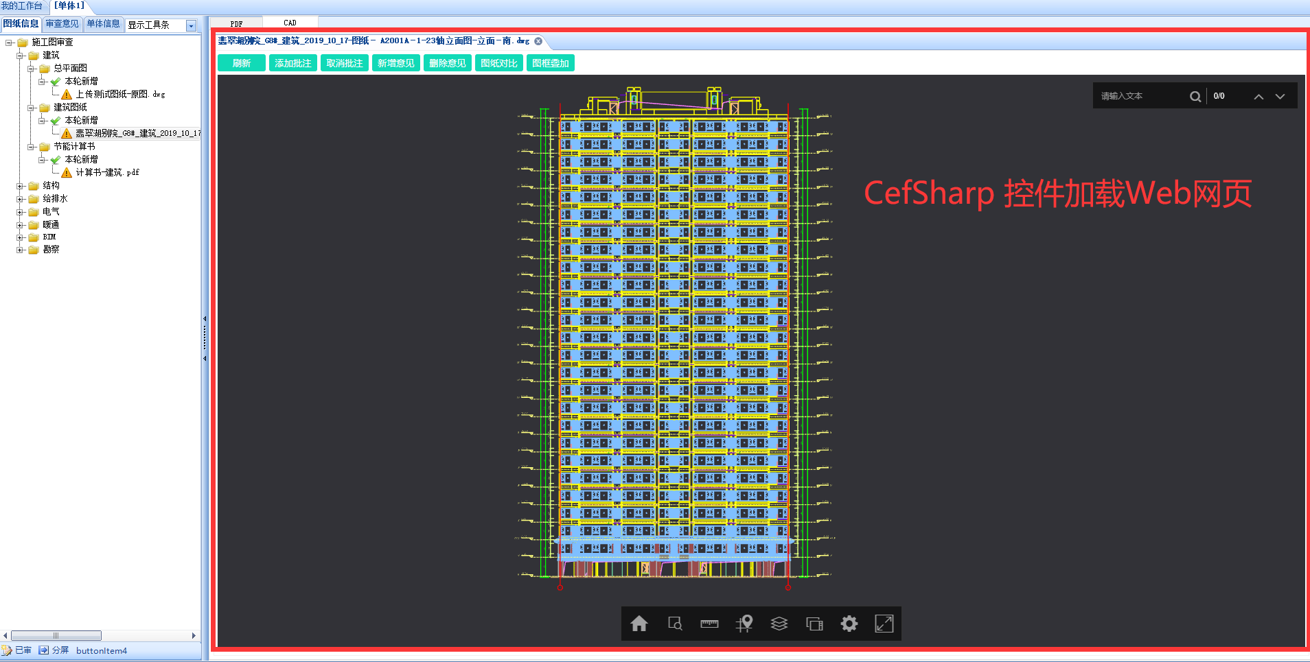 B/S架构的Web程序几乎占据了应用软件的绝大多数市场,但是C/S架构的WinForm、WPF客户端程序依然具有很实用的价值,如设计类软件 AutoCAD与Autodesk Revit、WPS、IT类的集成开发环境(数据库、图形处理软件)、PC端的小工具等等,充分利用了客户端电脑的资源综合计算能力,处理性能更加优秀。如果想在C/S架构的客户端程序中集成Web应用,也只能借助Web网页,然后将网页集成到客户端程序中,这样就间接的达到了目的。下面是客户端审图系统中集成Web网页的实际应用案例
